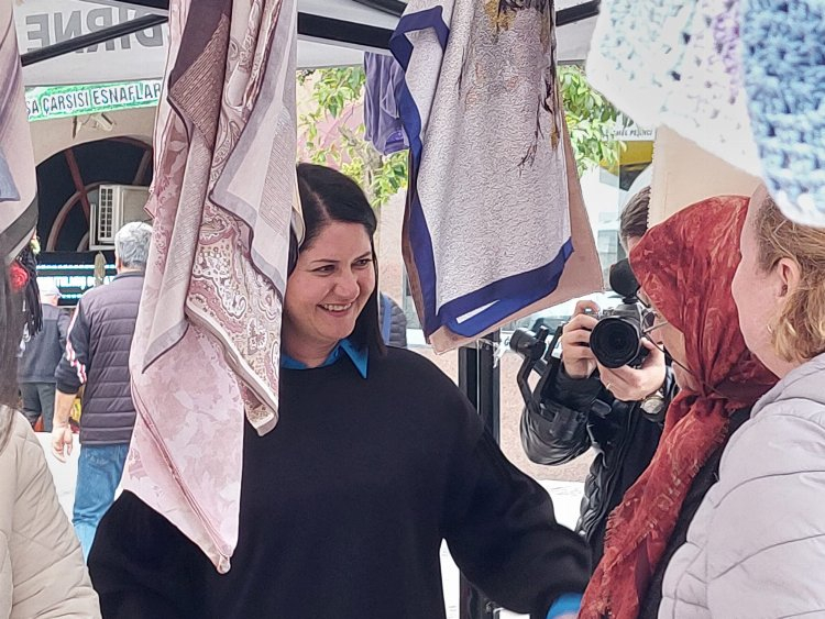 Edirne Belediye Başkanı Av. Filiz Gencan Akın, Saraçlar Caddesi'nde düzenlenen 1 Mayıs Emek ve Dayanışma Günü töreninden sonra emekçi kadınları ziyaret etti.