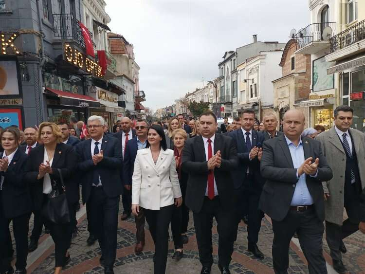 CHP Edirne Belediye Başkan adayı Av. Filiz Gencan Akın, CHP Edirne Merkez İlçe Örgütü’nü ziyaretinin ardından CHP’liler ile birlikte Atatürk anıtına yürüdü. Programa; CHP Edirne İl Başkanı Samet Kahraman, CHP Edirne Merkez İlçe Başkanı Yücel Balkanlı, CHP Edirne Milletvekili Ahmet Baran Yazgan, Edirne Belediye Başkanı Recep Gürkan, CHP Edirne İl Kadın Kolları Başkanı Çiğdem Gegeoğlu, il ve ilçe örgütlerinin yönetim kurulu üyeleri, Belediye Meclisi ve İl Genel Meclisi Üyeliği adayları ile parti üyeleri katıldılar.