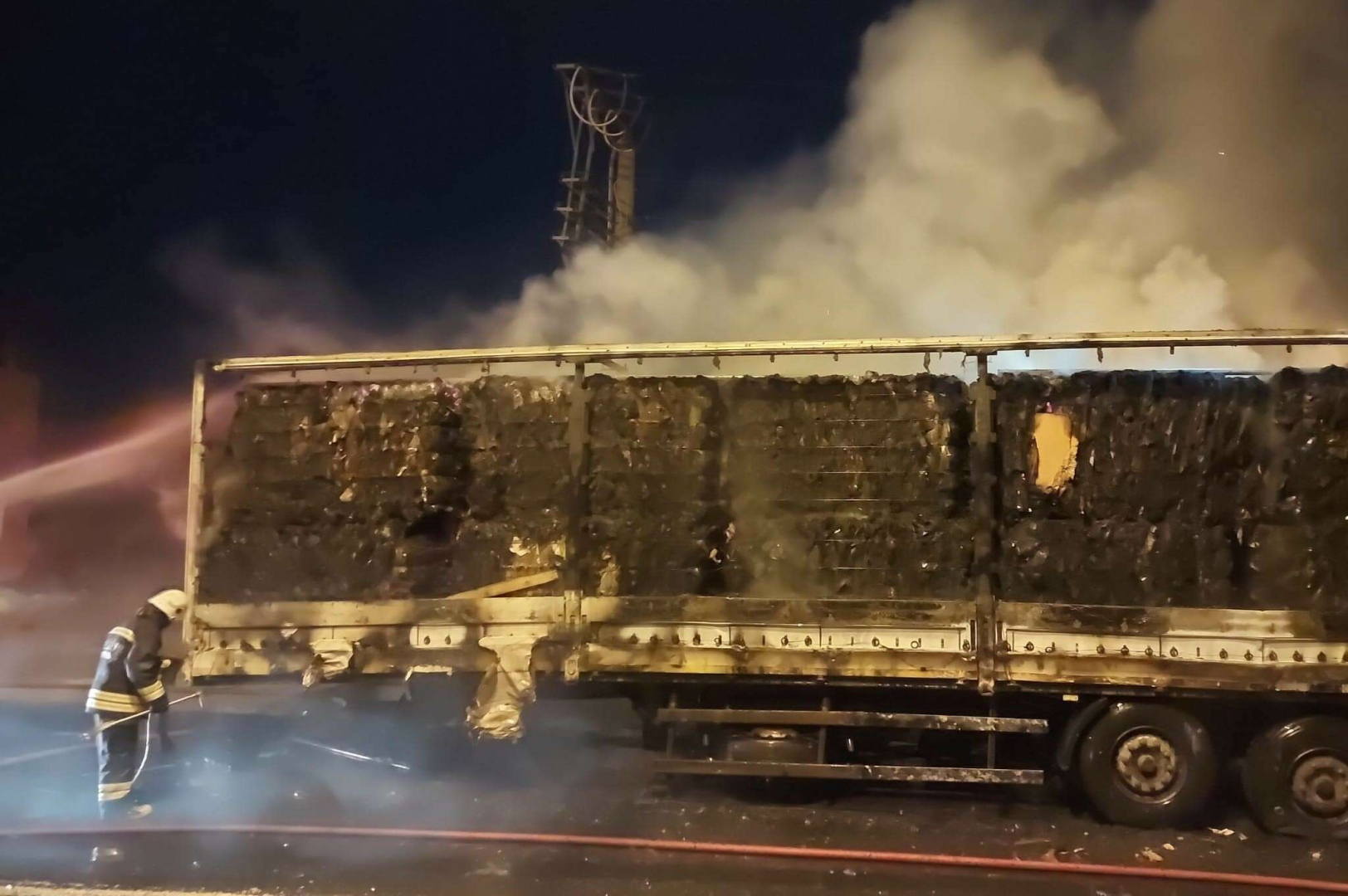 Yangını fark eden sürücü K.M. TIR’ı dorseden ayırarak itfaiyeden yardım istedi. Olay yerine gelen itfaiye ekipleri yangına müdahale etti.