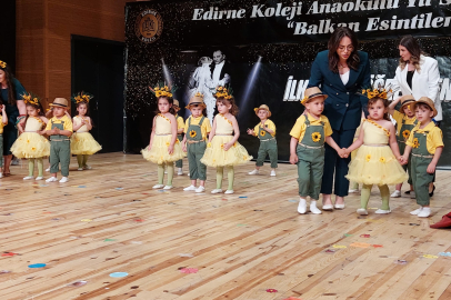 Edirne Koleji Anaokulu tarafından Edirne Belediyesi Atatürk Kültür Merkezi’nde yıl sonu gösterisi gerçekleştirdi. Programa Edirne Koleji Anaokulu Müdürü Meltem Bilgi, öğretmenler ve veliler katıldı. İlk olarak saygı duruşu ve İstiklal Marşı ile başlayan programda çocuklar hazırlandıkları gösterilerini gerçekleştirdi. Sarı kıyafetleriyle sahnede oynayan minikler velilerden tam not aldı.