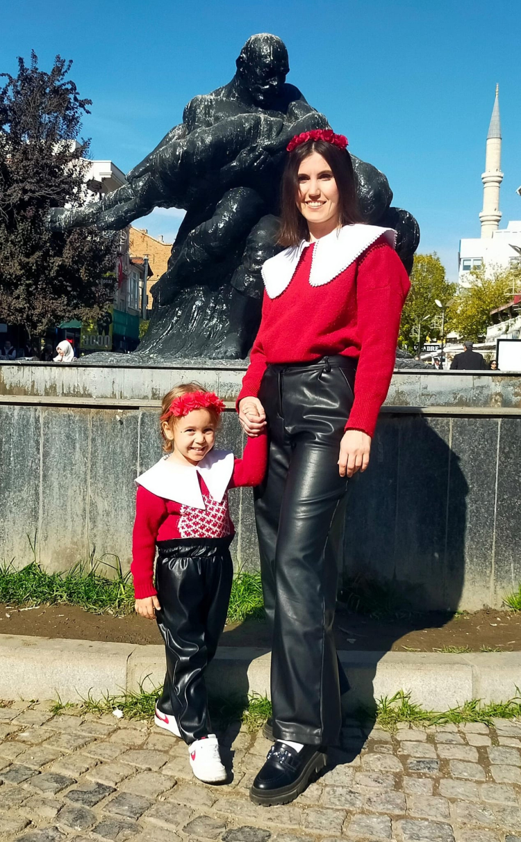 Tekirdağ'ın Malkara ilçesinde bir okulda Türkçe Öğretmeni olarak görev yapan Şeyda Şendil, 3 yaşındaki kızı İzil Vera Şendil ile bugün Edirne'ye geldi. Anne ve kızın kırmızı beyaz kombini görenlerin dikkatini çekti. Anne ve kızın kombinini görenler fotoğraf çekilmek için yoğun ilgi gösterdi.