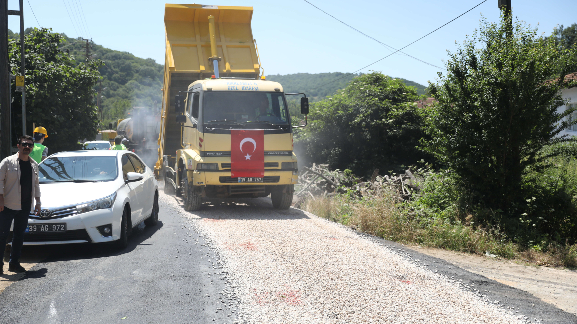Ardından Ekici ve beraberindekiler Dereköy köyündeki yolda sürdürülen asfalt yapım çalışmalarını inceledi.