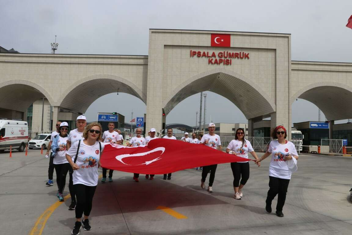 Atatürk'ü Anma ve Barış Koşusu kapsamında Selanik'te Atatürk'ün doğduğu evin bahçesinden alınan toprak, İpsala Sınır Kapısı'ndan Türkiye'ye getirildi.