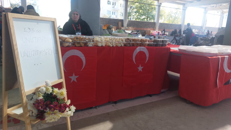 Ulu Önder Gazi Mustafa Kemal Atatürk'ün ebediyete intikalinin 86'ncı yıl dönümünde Edirne Kent Konseyi Kadın Meclisi Yönetim Kurulu Üyesi Hafize Belge, 1. Murat Semt Pazarı’nda kurulan kadın emek pazarında tezgahını Türk bayrağı ile donatarak özlemini dile getirdi.
