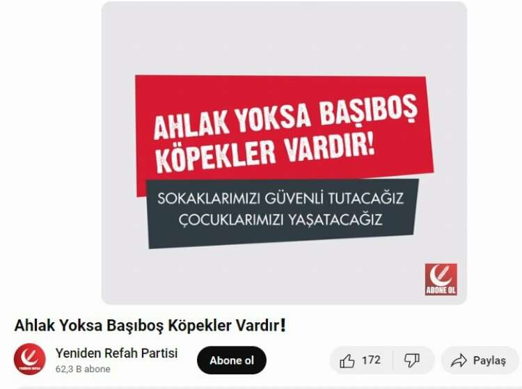 Bir video paylaşım platformunda “Ahlak yoksa başıboş köpekler vardır” başlığıyla YRP’ye ait sayfadan paylaşılan videoda, bir kız çocuğu ve kadına yer verilirken; “Sokaklarımızı güvenli tutacağız, çocuklarımızı yaşatacağız” sloganı kullanıldı. Videonun paylaşılmasının ardından Aydın, konuyla ilgili Batı Ekspres’e konuştu.