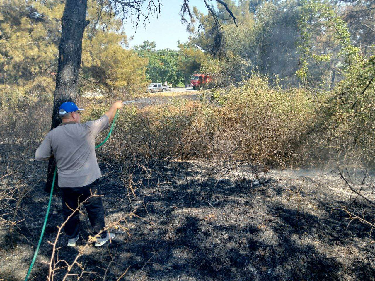 Yangın rüzgarın etkisiyle kısa sürede büyüyerek ağaçlık alana sıçradı. Haber verilmesi üzerine bölgeye itfaiye ve orman işletme ekipleri sevk edildi.