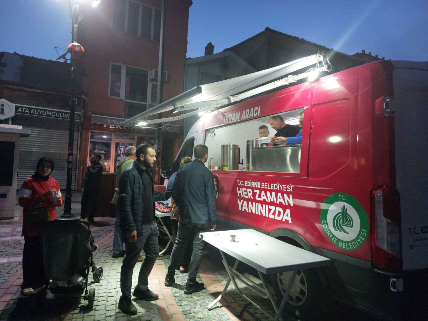 Edirne Belediyesi ikram aracı Saraçlar Caddesi’nde vatandaşlara çay, kahve ve kuruvasan ikramında bulundu.