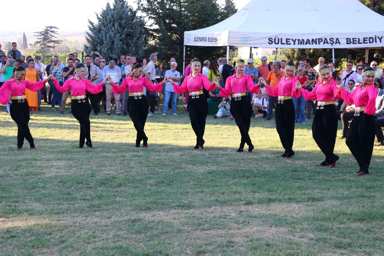 Süleymanpaşa Halk Dansları Topluluğunun gösterisinin ardından, davul zurna eşliğinde üzüm bağına geçen protokol üyeleri, üzüm hasat etti.