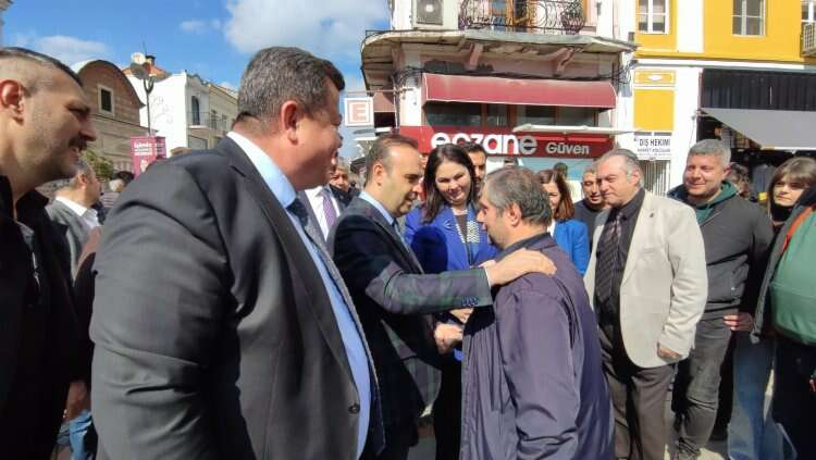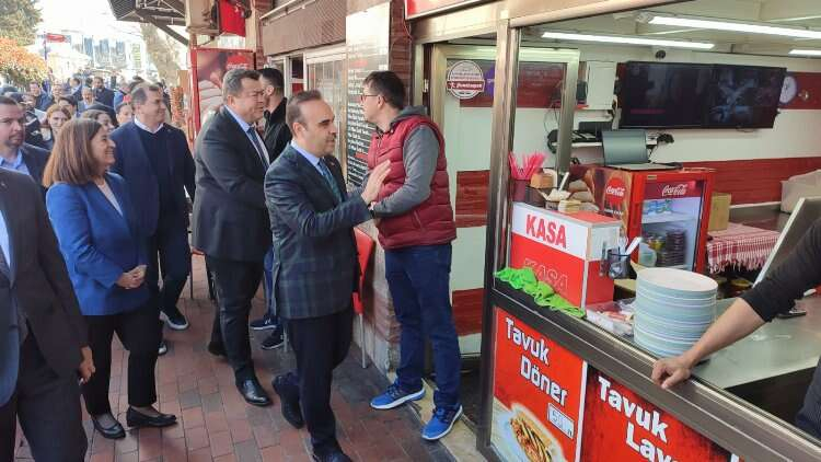Bakan Kacır, cadde üzerinde bulunan AK Parti seçim standına doğru yürürken CHP seçim standına da uğrayarak selamlaştı ve seçim çalışmaları yürüten stant görevlileriyle tokalaştı. Buradan AK Parti standına geçen Bakan Kacır partililerle hatıra fotoğrafı çektirdi.