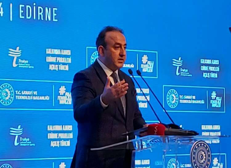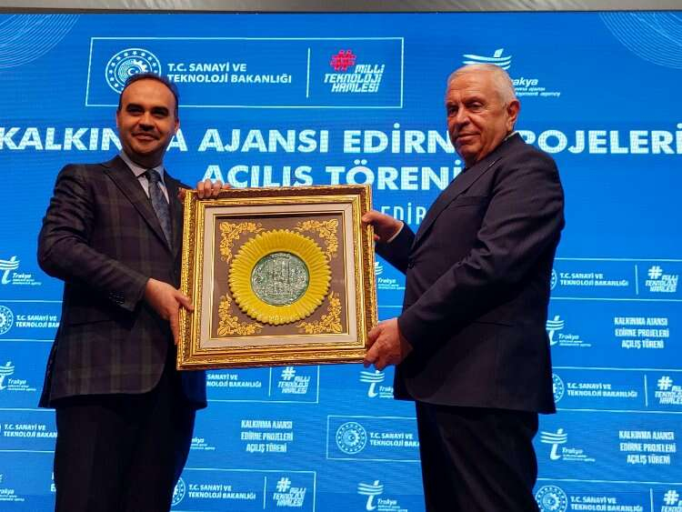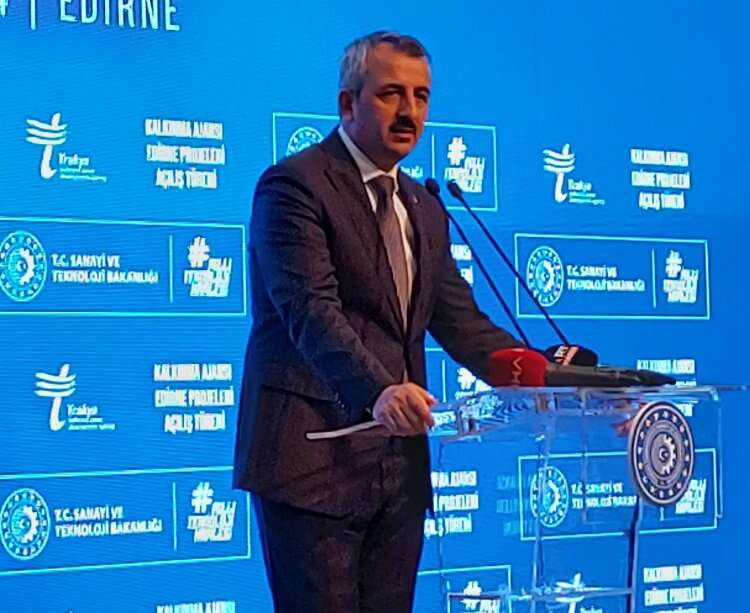 Edirne’de sanayinin destekleneceğini belirten Sanayi ve Teknoloji Bakanı Mehmet Fatih Kacır, “Edirne Kalkınma Ajansı Edirne projeleri açılış töreninde sizlerle birlikte olmaktan büyük memnuniyet duyuyorum. Trakya'nın göz bebeği, 4 bir yanı tarih kokan serhat şehri kültür mirasımız Edirne geçmişte olduğu gibi bugün de kalbimizde özel bir yere sahip. Anadolu'yu Avrupa'ya bağlayan nice medeniyetlere ev sahipliği yapmış bir asra yakın ecdadımızın baş şehri olmuş. Pehlivanlar yurdu Edirne'ye bugün de yeni projeler, yeni eserler kazandırmanın mutluluğu içindeyiz. Edirne’mizin nitelikli ve çok yönlü kalkılmasını destekleyecek 17 projenin şehrimizde ve ülkemizde hayırlı uğurlu olmasını temenni ediyorum. Ülkemizi muasır medeniyetler birliğinin de üzerine taşıyacak yatırımlara imza attık. Elbette yetmez diyoruz. Cumhuriyetimizin 2 asrında Türkiye yüzüncü yılında daha gelişmiş yükselmiş, marka şehirler için durmadan, duraksamadan çalışmaya devam ediyoruz. Bu vizyon doğrultusunda Edirne’mizin de sanayisini, üretimini, istihdamını, kalkınmasını desteklemeye devam edeceğiz” şeklinde konuştu