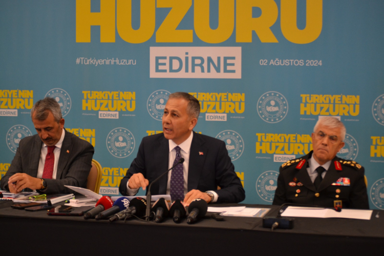 İçişleri Bakanı Ali Yerlikaya, Edirne’de düzenlenen “Türkiye’nin Huzuru” toplantısının ardından basın mensuplarına açıklama yaptı.