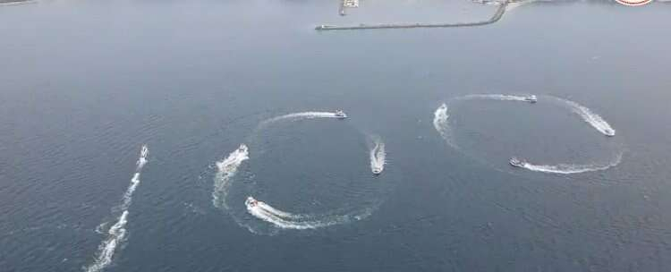Karadeniz kıyısında bulunan Kırklareli'nin Demirköy ilçesine bağlı İğneada beldesinde balıkçılar, Cumhuriyet'in 100. yılı etkinlikleri kapsamında tekneleriyle koreografi hazırladı.