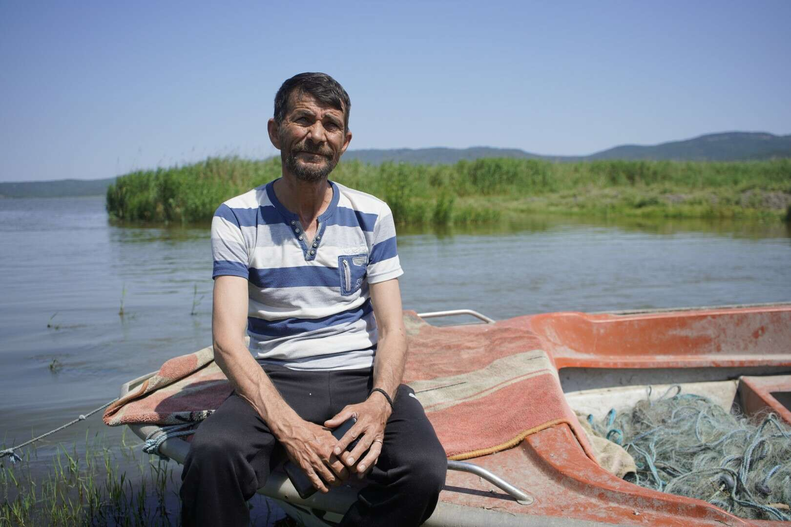 Edirne’nin Enez ilçesinde balıkçılık yapan Bedir Yılmazoğlu’nun kayığına yıllardır gelen leylek, hem yarenlik ediyor hem de ağa takılan balıklara ortak oluyor.