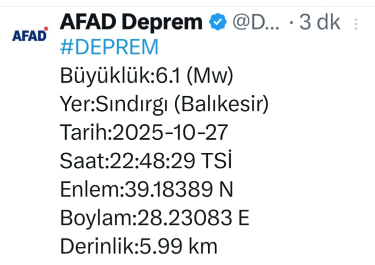 Balıkesir’in Sındırgı ilçesinde meydana gelen 6.1 büyüklüğündeki deprem Edirne’de de hissedildi.