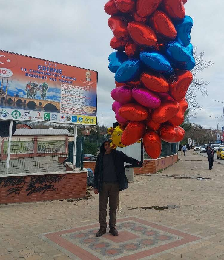 Edirne'de balon satıcısı Kadir Karadağ, sevgililer gününde her yıl 70-80 tane balon sattığını, bu yıl ise satışların çok düştüğünü söyledi. Akdağ, "Siftah bile yapamadık" dedi.
