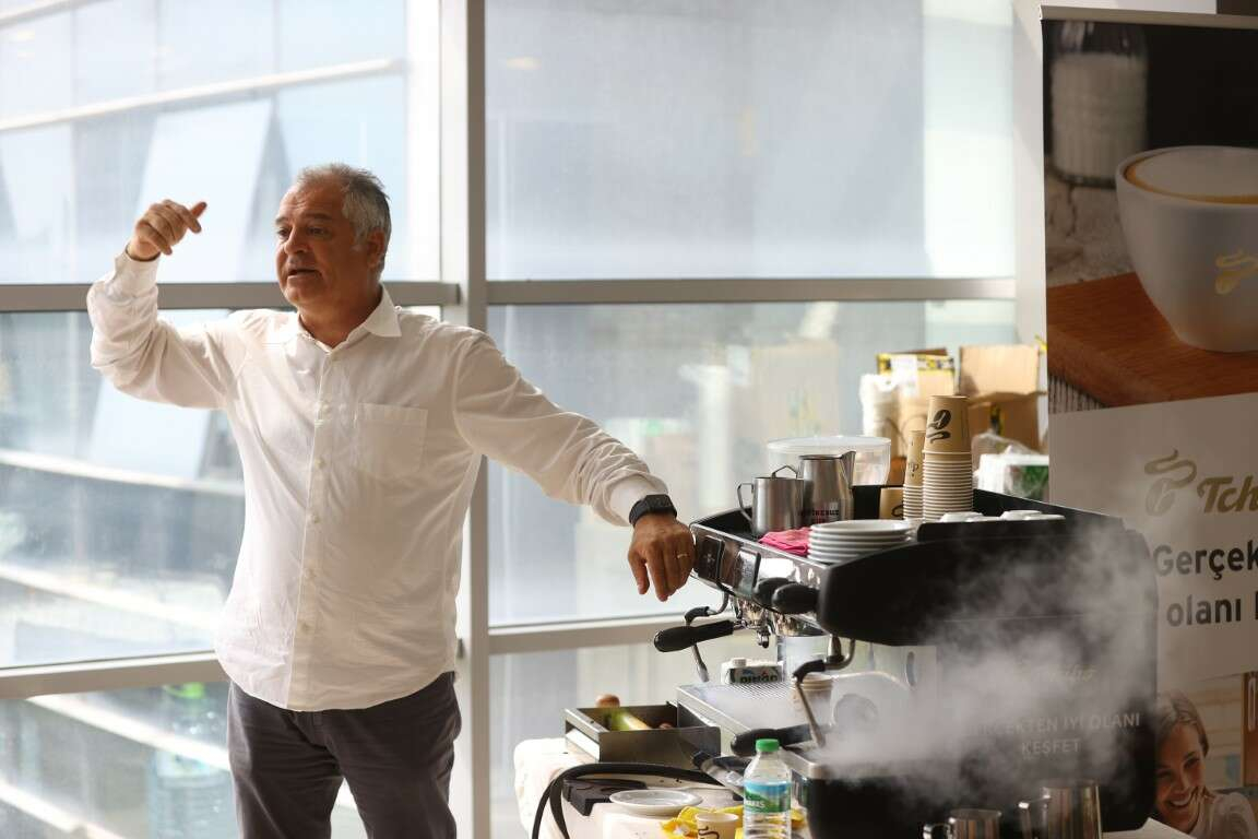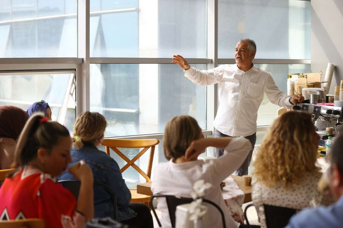 Ardından Giritli, İtalya'ya özgü kahve türü olan espresso hazırlamanın tekniklerini uygulamalı olarak anlattı, katılımcılarla kahve hazırladı.