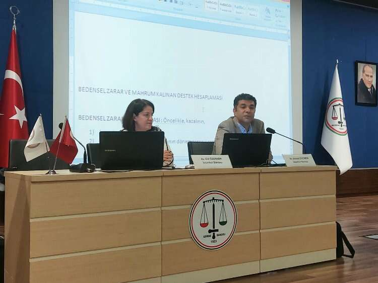 Aygün Ulubey Ergüden, seminerin düzenlenmesinde katkı sağlayan Edirne Barosu Staj ve Meslek İçi Komisyonu’na teşekkür etti. Seminerde İstanbul Barosu avukatlarından Av. Ahmet Evcimen ve Av. Elif Özdemir katılımcılara iş kazası ve meslek hastalıklarıyla ilgili tazminat davalarında izlenmesi gereken hukuki yollarla ilgili bilgi verdi.