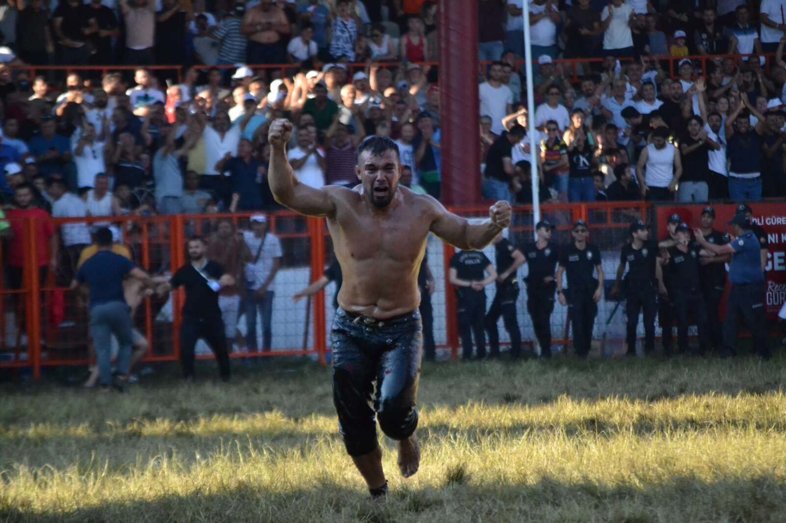 Puanlama güreşinde İsmail Balaban’ı yenen Yusuf Can Zeybek, 662. Tarihi Kırkpınar Yağlı Güreşlerinin ve Cumhuriyetin 100. yılının başpehlivanı oldu.