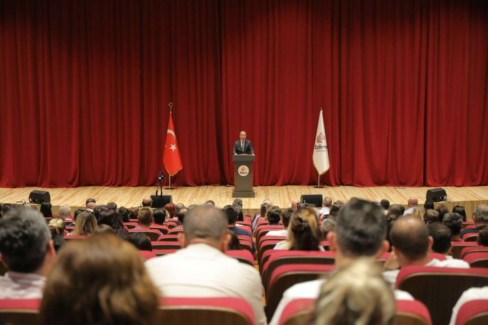 Edirne Belediye Başkanı Recep Gürkan, 9 günlük Kurban Bayramı tatili öncesindeki son iş gününde Edirne Belediyesi Atatürk Kültür Merkezi ve Belediye Konservatuvarı’nda belediye çalışanları ile bir araya geldi. Başkan yardımcıları, daire müdürleri ve belediye personelinin katıldığı bayramlaşma töreninde Belediye Başkanı Recep Gürkan, birlik ve beraberlik mesajı vererek, “Biz büyük bir aileyiz” vurgusunda bulundu.