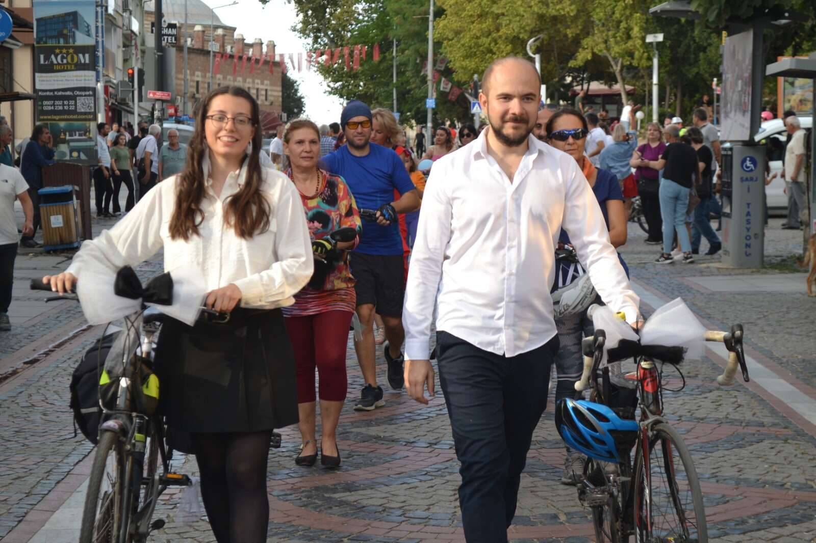 Basın açıklamasının ardından kadınlar, bisikletlerindeki zilleri çalarak ve halkı selamlayarak Saraçlar Caddesi’nden geçtiler. Trafiğe kapalı caddeden bisikletleriyle yürüyerek geçen kadınlar, caddenin sonunda bisikletlerine binerek pedal bastılar. Bisiklet turunda kadınlar, Tunca ve Meriç nehirlerinin tarihi köprülerinden geçerek Lozan Caddesi üzerinden Karaağaç Mahallesi’ne ulaştılar. Kadınlar, turlarını Trakya Üniversitesi Karaağaç Yerleşkesi’ndeki Lozan Anıtı’nda tamamladılar.
