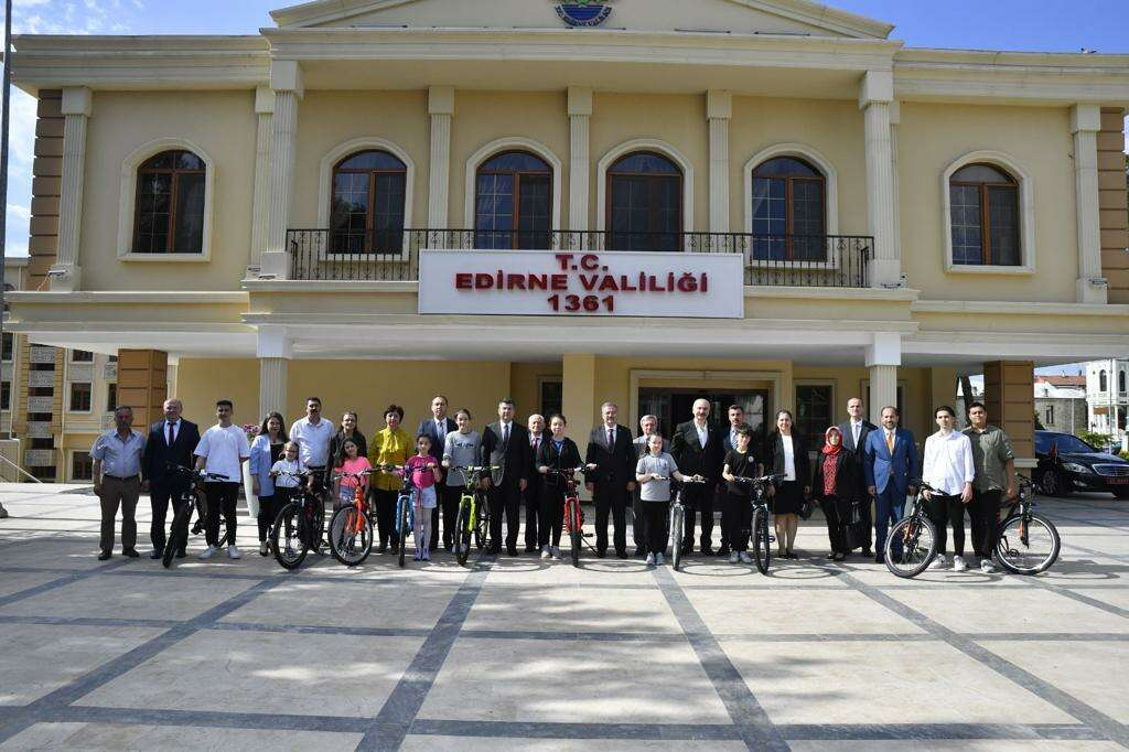 Valimiz Sayın H. Kürşat Kırbıyık, daha sonra dereceye giren öğrencilerimize ödül olarak verilen bisikletlerini hediye ederek hatıra fotoğrafı çektirdi.