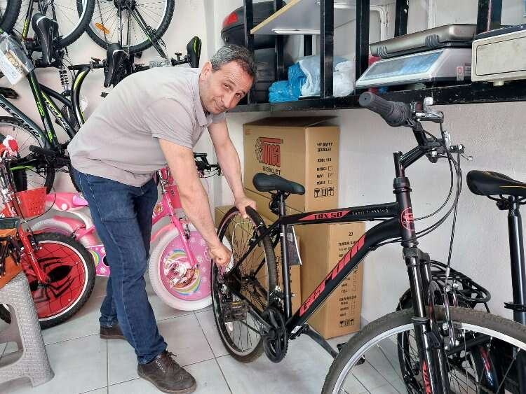 Nurlu, hava sıcaklıklarının artmasıyla birlikte bisiklet satışlarında hareketliliğin başladığını belirterek; “Asıl yoğunluk okulların kapanmasıyla birlikte oluyor. Havalar ısındığı için özellikle hafta sonları hareketliliğimiz oluyor. Bunun yanında tamir işi de yaptığımız için tamir işlemlerimiz de yavaş yavaş başladı. Lastik patlakları, fren ayarları, vites ayarları gibi tadilatları yapıyoruz” ifadelerini kullandı.