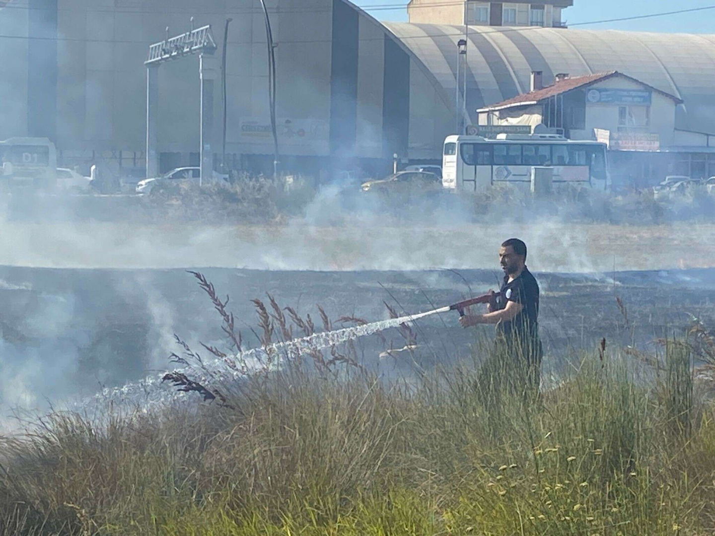 Bölgeye gelen itfaiye ekipleri ile birlikte boş araziye gelen arsa sahibi, “Burası benim arsam” diyerek yangının büyümemesi için söndürme çalışmalarına yardımcı oldu. Arazide çıkan yangının sebebi henüz belirlenemezken, polis ekipleri yangınla ilgili inceleme başlattı.