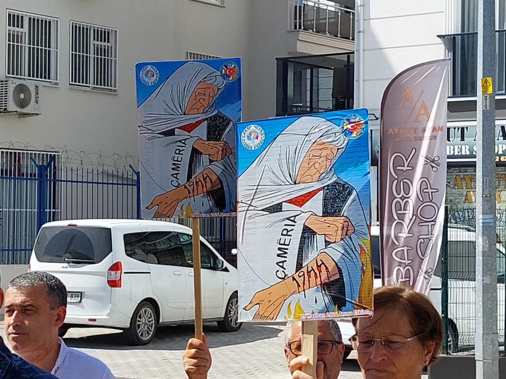 Çelenk bırakılmasının ardından konuşan Balkan Rumeli Türkleri Konfederasyonu Başkanı Sabri Mutlu, “Tarihi kara lekelerle dolu olan Yunan toprakları birçok katliama da sahne olmuştur. Mora, Tripoliçe, Navarin, Çamerya katliamları en bariz örnekleridir. Demokrasi savaşı verdiklerini söyleten Yunan politikacılar aslında ülkelerindeki azınlıklara tam bir vahşet yaşatmışlardır. Bugün burada toplanmamızın sebebi Yunanistan'ın 1944-1945 yıllarında Yunanistan'ın Kuzey Batısında Çamerya Bölgesi’nde katlettiği binlerce masum Arnavut Müslüman insanı anmaktır. Bu katliam da unutturulamadı ve unutulmayacak. Yunan Hükümeti ayak oyunlarıyla kendisi için tehlike gördüğü her topluluğu; ya silahla katletmeye, ya da psikolojik baskılarla boyun eğdirmeye tarih boyunca devam etmiştir. Demokrasinin beşiği olarak görülen topraklar aslında katliamlarla kan gölüne dönen topraklar olmuştur” dedi.