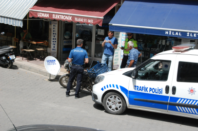 Camicedit Mahallesi Atatürk Caddesi'nde denetim yapan polis ekipleri, plakası olmayan ya da eksiği bulunan sürücülerin motosikletlerini yediemine gönderiyor.