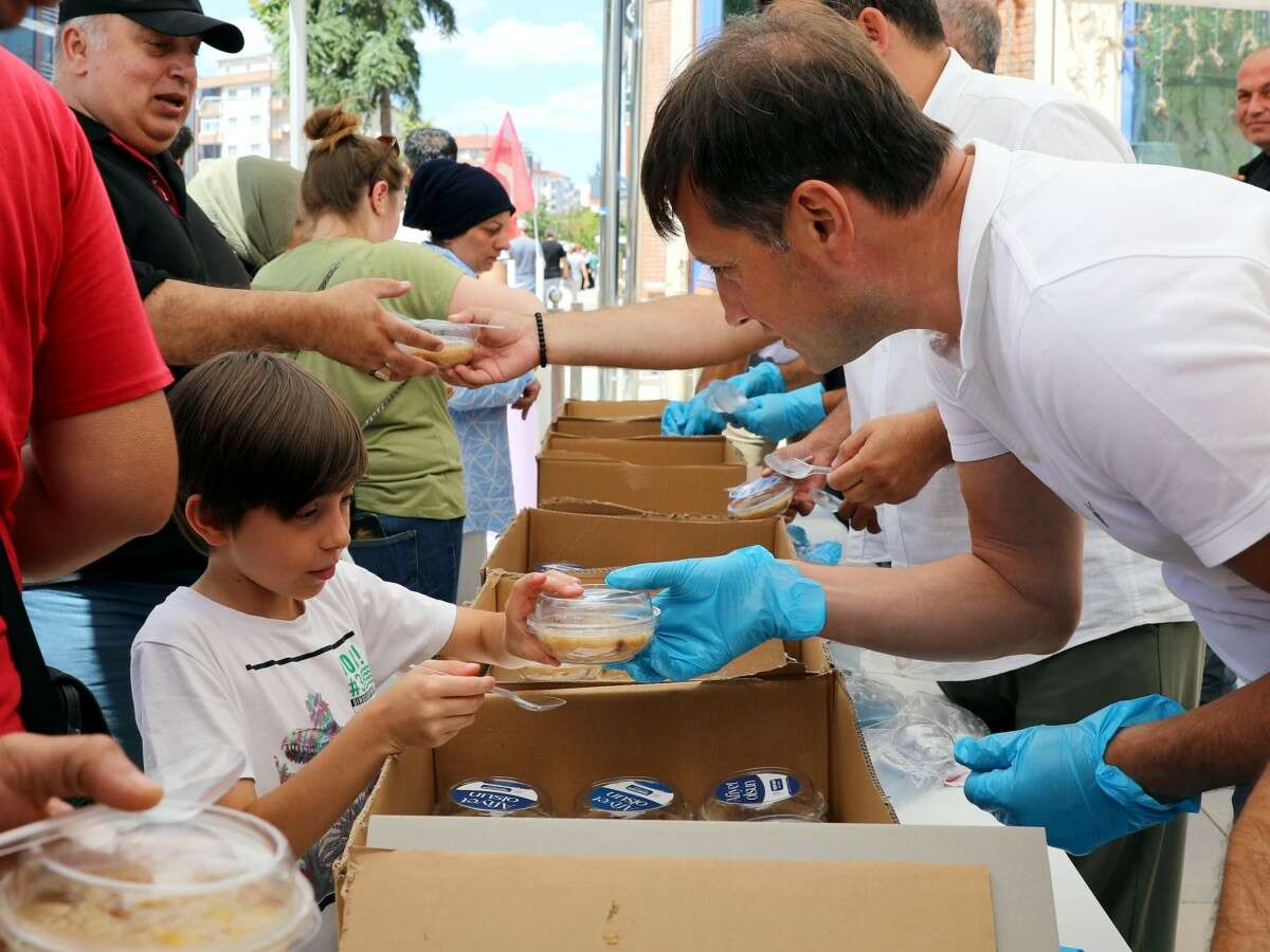 Tekirdağ’ın Çerkezköy ilçesinde belediye tarafından Muharrem ayı aşure günü dolayısı bu yıl da aşure dağıttı.