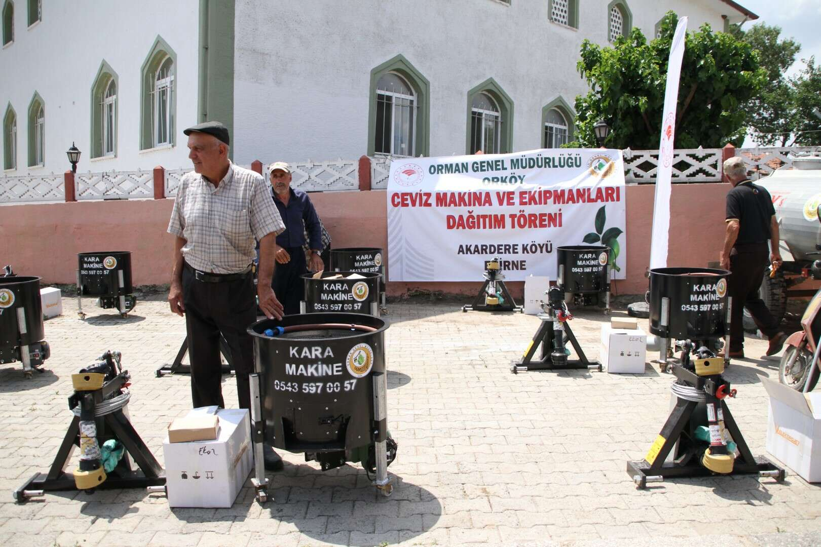Edirne Orman İşletme Müdürlüğü tarafından Süloğlu ilçesine bağlı Akardere köyünde Orman ve Köy İlişkileri (ORKÖY) Projesi kapsamında kurayla belirlenen 23 ceviz üreticisine ilaçlama, silkeleme ve soyma makinesi teslim edildi.