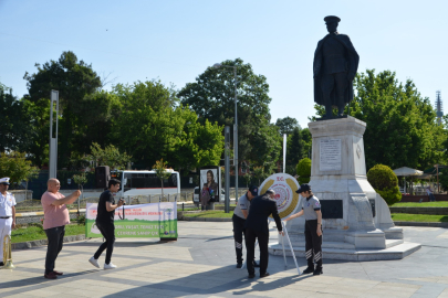 Çevre, Şehircilik ve İklim Değişikliği İl Müdürü Engin Öztürk’ün Atatürk Anıtı’na çelenk sunulmasıyla başlayan program saygı duruşu ve İstiklal Marşı ile devam etti.