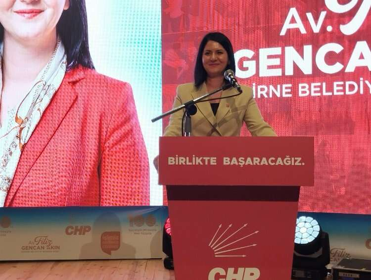 İl Başkanı Kahraman’ın konuşmasının ardında projelerini tanıtmak ve konuşmasını yapmak üzere kürsüye gelene CHP Edirne Belediye Başkan Adayı Filiz Gencan Akın, Cumhuriyet kadını olduğunu, sosyal hayatta, çalışma hayatında ve siyasette bende varım deme cesaretinin de buradan geldiğini belirterek; “Bir kız çocuğu olarak ailem beni okuttuysa, bunu önce Atatürk Cumhuriyeti’ne borçlu olduğumu biliyorum. Bu nedenle de hep, iyi ki Edirneliyim dedim. Şimdi bu kente ve Cumhuriyet’e borcumu ödeme zamanı. Beni Cumhuriyet değerleriyle yetiştiren güzel şehrime hizmet etme zamanı. Cumhuriyetimizin ikinci yüzyılında Atamızın partisi, emanetini, bayrağını daha da ileriye taşıma zamanı. Edirne'yi hep birlikte, toplumun her kesiminin daha güçlü ve yaşam konforunun artacağı bir kent yapmanın tam zamanı. Çünkü; Edirne'nin yolu Cumhuriyet yoludur. Yüz yıldır bu yolda yürüdük. Edirne bu yoldan dönmez. Edirne domuz bağcılara, kadın düşmanlarına, çocukları karanlık tarikat yurtlarına hapsedenlerle aynı yoldan gitmez. Edirne ülkeye göçmen dolduranlara, emeklinin üç kuruşunu cebinden alanlara, gençlerin umutlarını çalanlara pabuç bırakmaz. Vatandaşlarımıza, hemşerilerimize bu yolda, bildiğimiz yolda daha güçlü adımlarla yürümeye söz veriyorum. Bugün burada hepinizi bu güzel Cumhuriyet şehrine sahip çıkmaya, hep birlikte bu aydınlık yolda adımlarımızı sağlamlaştırmaya çağırıyorum. Yıllardır bu kentin sokaklarındayım, Edirne'mizin sorunlarını biliyorum, ihtiyaçlarını biliyorum. Bu kentte çok güzel günler yaşadım, çok güzel anılar biriktirdim. Bu kent için hedeflerimiz var. Bunları gerçekleştirecek gençliğimiz, enerjimiz, kararlılığımız var. Bu kent için yapacak çok işimiz var. Bu kentte Cumhuriyeti ve değerlerimizi yaşatmak, çocuklarımıza iyi bakmak, kadınların özgürce yaşamasını güvence altına almak, özgürlüklerimizi korumak her Atatürkçünün görevidir. Bize, Ata'mızın verdiği en büyük görev, Türkiye Cumhuriyetini ilelebet korumak ve yaşatmaktır. Bunu da Edirne'de Cumhuriyet’ten taraf olanların gücünü göstererek yapacağız. Cumhuriyet düşmanlarının tuzaklarına düşmeyeceğiz, oyunlarına gelmeyeceğiz, yolumuzdan şaşmayacağız, Cumhuriyet değerlerinden vazgeçmeyeceğiz. Bu uğurda, birlikte mücadele edecek sevgili yol arkadaşlarım hazır mıyız? İyisi değil, en iyisi için; güzeli değil, en güzeli için hazırız, geliyoruz” diye konuştu.