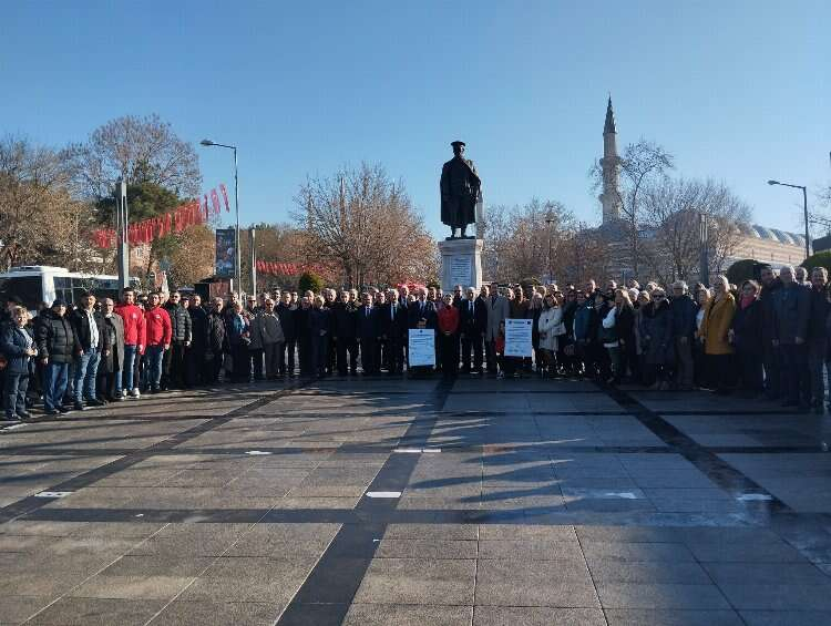 Cumhuriyet Halk Partisi (CHP) Edirne İl Örgütü, 22-23 Aralık tarihlerinde Irak’ın kuzeyinde şehit düşen Mehmetçikler için Edirne’de Atatürk Anıtı önünde basın açıklaması düzenledi. Şehitler için 2 dakikalık saygı duruşu ve İstiklal Marşı’nın okunması sonrası CHP Edirne İl Başkan Vekili Reyhan Güzel’in okuduğu basın açıklamasında, milli yas ilan edilmemesine tepki gösterildi. Güzel; “22-23 Arak 2023 gecelerinde arka arkaya gelen kara haberlerle sarsıldık, Pençe Kilit Harekat bölgesinde 12 vatan evladımız bölücü terör örgütünün hain saldırılarında şehit verdik. Yüreğimiz yandı, bağrımıza taş oturdu. Acımız büyük. Bugün, gencecik vatan evlatlarını toprağa verdiğimiz hain terör saldırılarına, bu insanlık dışı saldırıların yol açtığı onarılmaz acılara artık demek için buradayız. Şehitlerimizin her birinin ayrı bir hikayesi, arkada bıraktıkları aileleri, evlatları, eşleri var. Şehitlerimize bir kez daha Allah'tan rahmet, acılı ailelerine başsağlığı ve sabır, yaralanan askerlerimize şifa diliyoruz. Terörü, bölücü terör örgütü PKK'yı ve insanlık dışı yöntemlerini lanetliyoruz. Sadece kınamıyoruz, lanetliyoruz! Toprağa verdiğimiz kahraman evlatlarımızın, bütün şehitlerimizin aziz hatıralarını sonsuza dek yaşatacağımıza söz veriyoruz. Aynı operasyon bölgesinde iki gece içerisinde 12 şehit vermemiz hepimizi derin bir endişeye sürükledi” dedi.