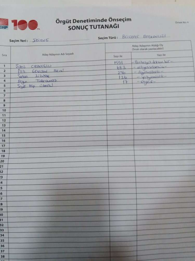 Cumhuriyet Halk Partisi (CHP) Edirne Merkez İlçe Örgütü tarafından bugün düzenlenen ön seçimde CHP'nin Edirne Belediye Başkan adayı Şükrü Ciravoğlu oldu.