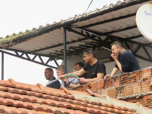 Bazı vatandaşların evlerinin balkonundan hortumla su sıkarak yangına müdahale etmeye çalıştığı görüldü.