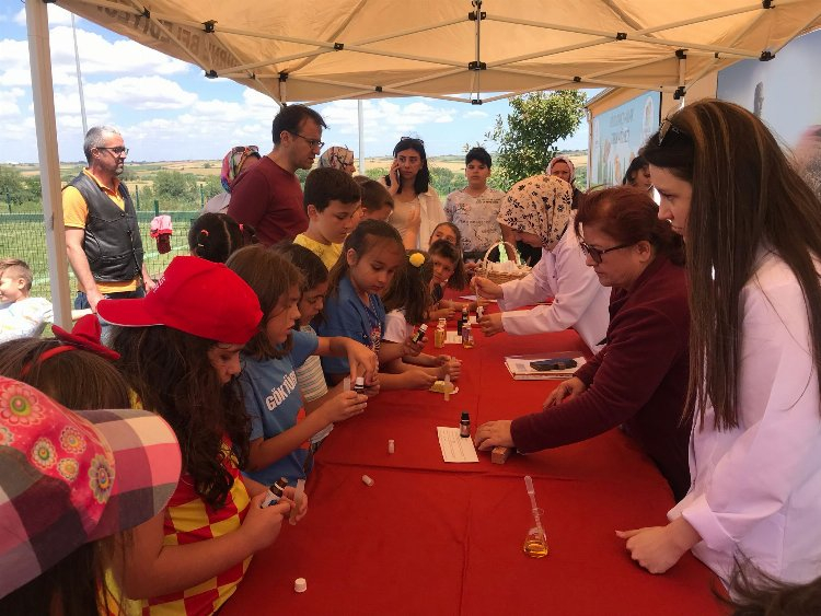 Etkinlik boyunca çocuklar, bitkilerin nasıl yetiştirildiğini, hangi aşamalardan geçerek yağlarının çıkarıldığını ve bu yağların nasıl karıştırılarak parfüm haline getirildiğini öğrendi.