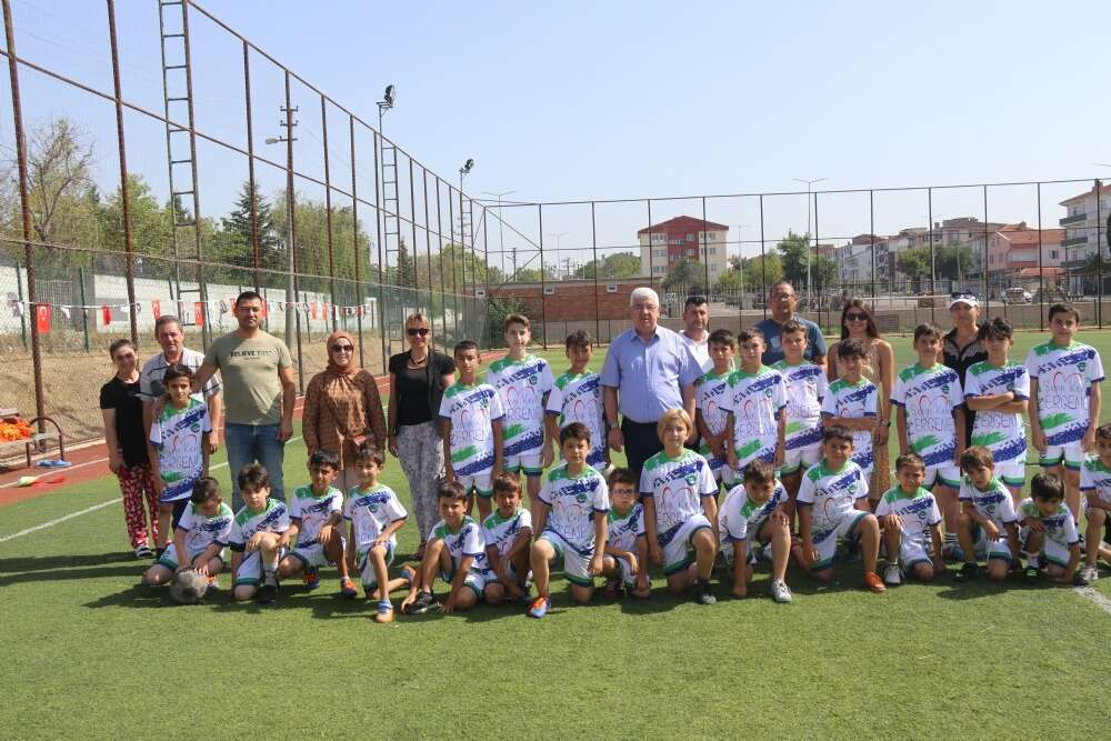 Ergene Belediyesine ait olan Sağlık Mahallesindeki futbol sahasında gerçekleşen forma dağıtım töreni Ergene Belediye Başkanı Rasim Yüksel’in yanı sıra Ergene Belediye Başkan yardımcısı Ayça Albayraktar’da katıldı.