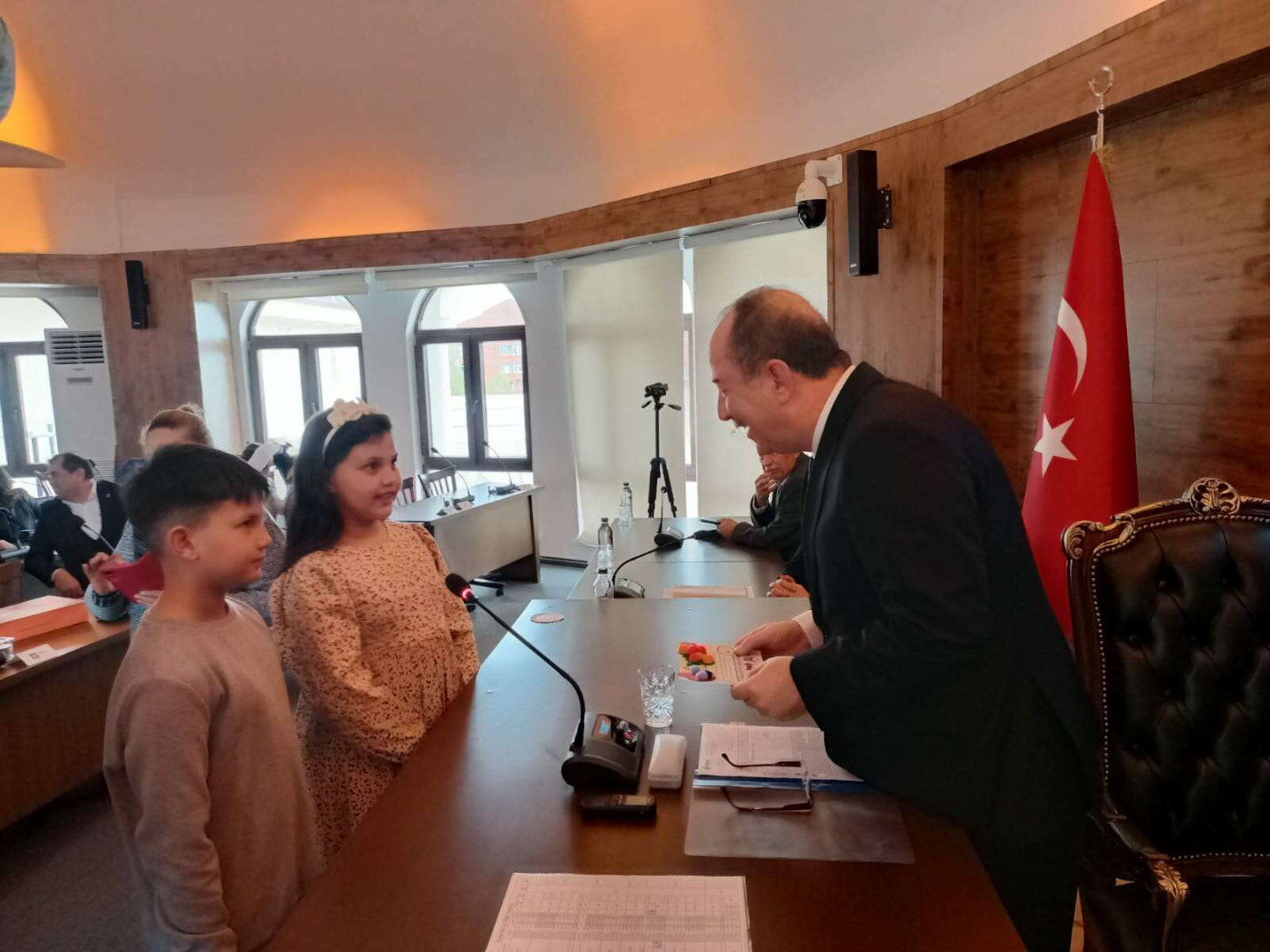 Edirne Belediyesi Meclisi’nin bugün düzenlenen olağanüstü toplantısının sona ermesinin ardından çocuklar, meclis salonunda Belediye Başkanı Recep Gürkan’ı ziyaret etti. Belediye meclisi salona giren çocukları Gürkan karşılarken; çocuklar da Gürkan’a 20 Kasım Dünya Çocuk Hakları Günü’nde düzenleyecekleri etkinlik için hazırladıkları davetiyeyi takdim etti.