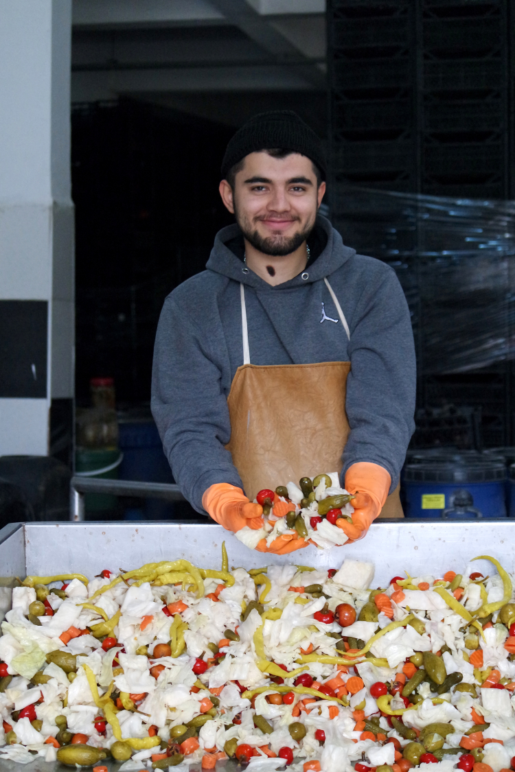 "Bizim hali hazırda kooperatifimizde 78 turşucu arkadaşımız var. Tabii her sene bazı firmalar büyürken, bazı firmalar da küçülme aşamasına gidiyor. Yaklaşık 70-80 bin ton arası köyümüze ham madde girişi vardır. Salatalık olsun, biber olsun, bunun yanında tabii fasulyesi var, pancarı, patlıcanı, eriği, bamyası var. Yani çeşitlerimiz çok ama şu an hali hazırda satılan, tezgahlarımızda müşterilerimizin en çok tercih ettiği turşu 25 çeşittir."