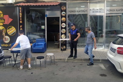 Zabıta ekipleri, yayaların geçişine engel oluşturan malzemeleri kaldırırken, iş yeri sahiplerine uyarılarda bulundu.