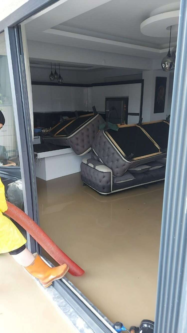 Rumeli Mahallesi’nde de bir evi su bastı. Şiddetli sağanak nedeniyle evini su basan vatandaş zor anlar yaşadı.