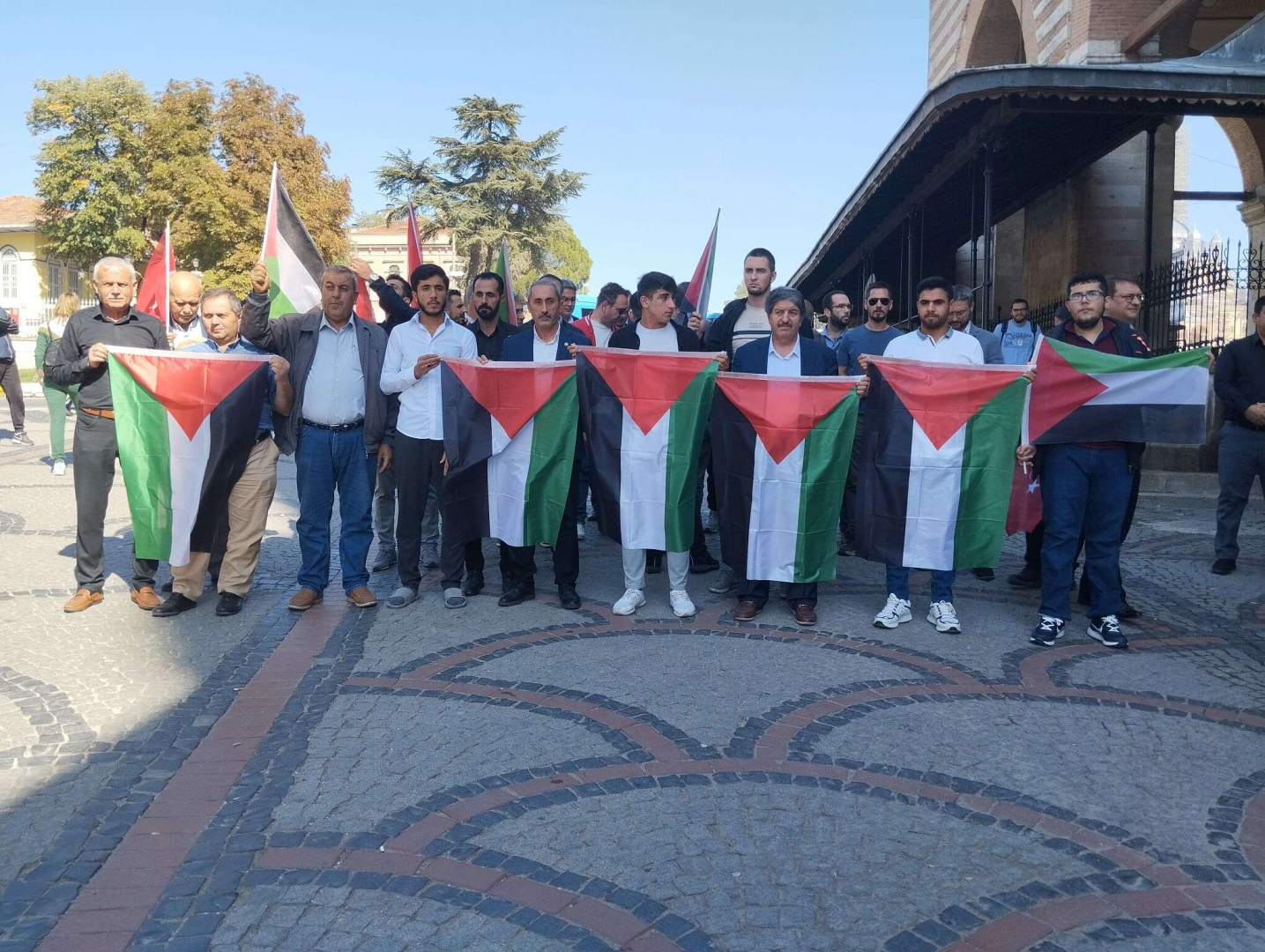 Eski Cami’de kılınan Cuma namazı sonrası, İHH Edirne Eğitim Birim Başkanı ve aynı zamanda Peygamber Sevdalıları Edirne İl Koordinatörü Ömer Bozkurt, “Yıllardır işgal güçlerinin saldırıları sonucu binlerce Filistinli şehit edildi. Çok sayıda Filistinli yaralandı ve sakat bırakıldı. Binlerce Filistinlinin evleri ve arazileri hukuksuz bir şekilde işgal edildi. Gazze'nin etrafına örülen utanç duvarları ile son yüzyılın en büyük açık hava hapishanesi inşa edildi. İsrail'in hukuksuz ablukası ve işgali nedeniyle yıllarca Filistinliler kendi topraklarında esir olarak hayat mücadelesi veriyorlar. İsrail bölgede bulunan bütün ülkelerle siyasi ve ekonomik bir yakınlaşma kurarak, kendine bir koruma kalkanı oluşturmaya çalıştı. Aynı zamanda Cenin'de, Shuafat kamplarında, Nablus'ta ve Gazze'de çok sayıda katliam gerçekleştirdi. 75 yıldır hakları, toprakları, vatanları, canları, malları ellerinden alınan Filistinliler, apertheid rejimi İsrail zulmü altında çok zor şartlarda yaşamlarını devam ettirmeye çalışıyor. Yapılan bütün anlaşmalara rağmen, uluslararası alanda alınan bütün kararlara rağmen Filistin'e, Kudüs'e, Mescid-i Aksa'ya ve Gazze'ye saldırmaya ve toprakları işgal etmeye devam ediyor. Filistin, her geçen gün Siyonist İsrail'in saldırılarıyla karşı karşıya kalıyor. Tüm dünya İsrail katliamlarına gözünü yummuş durumda. Bizler yaşanan tüm süreçlerde şunu net bir şekilde gördük; yeryüzünde bozgunculuk görevini üstlenmiş olan İsrail, hiçbir uyarıyı, kınamayı ve eleştiriyi dinlemedi” dedi.