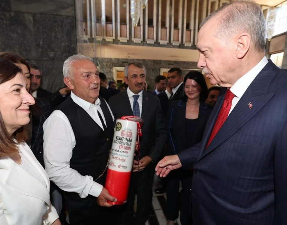 Edirne Belediye Başkanı Av. Filiz Gencan Akın başkanlığındaki heyetin Erdoğan’ı Kırkpınar’a davet edilmesiyle ilgili olarak Başkan Akın şu açıklamayı yaptı: “Edirne Valimiz Yunus Sezer, Edirne Milletvekilimiz Fatma Aksal, Türkiye Geleneksel Güreşler Federasyonu Başkanımız İbrahim Türkiş ve Kırkpınar Ağamız Seyfettin Selim ile birlikte Cumhurbaşkanımız Sayın Recep Tayyip Erdoğan’a Kırkpınar davetiyemizi ve Kırkpınar’ımızın simgesi kırmızı dipli mumumuzu takdim ederek 5-6-7 Temmuz tarihlerinde Sarayiçi Er Meydanı’nda düzenleyeceğimiz 663. Kırkpınar Yağlı Güreşleri’mize davetimizi sunduk.”