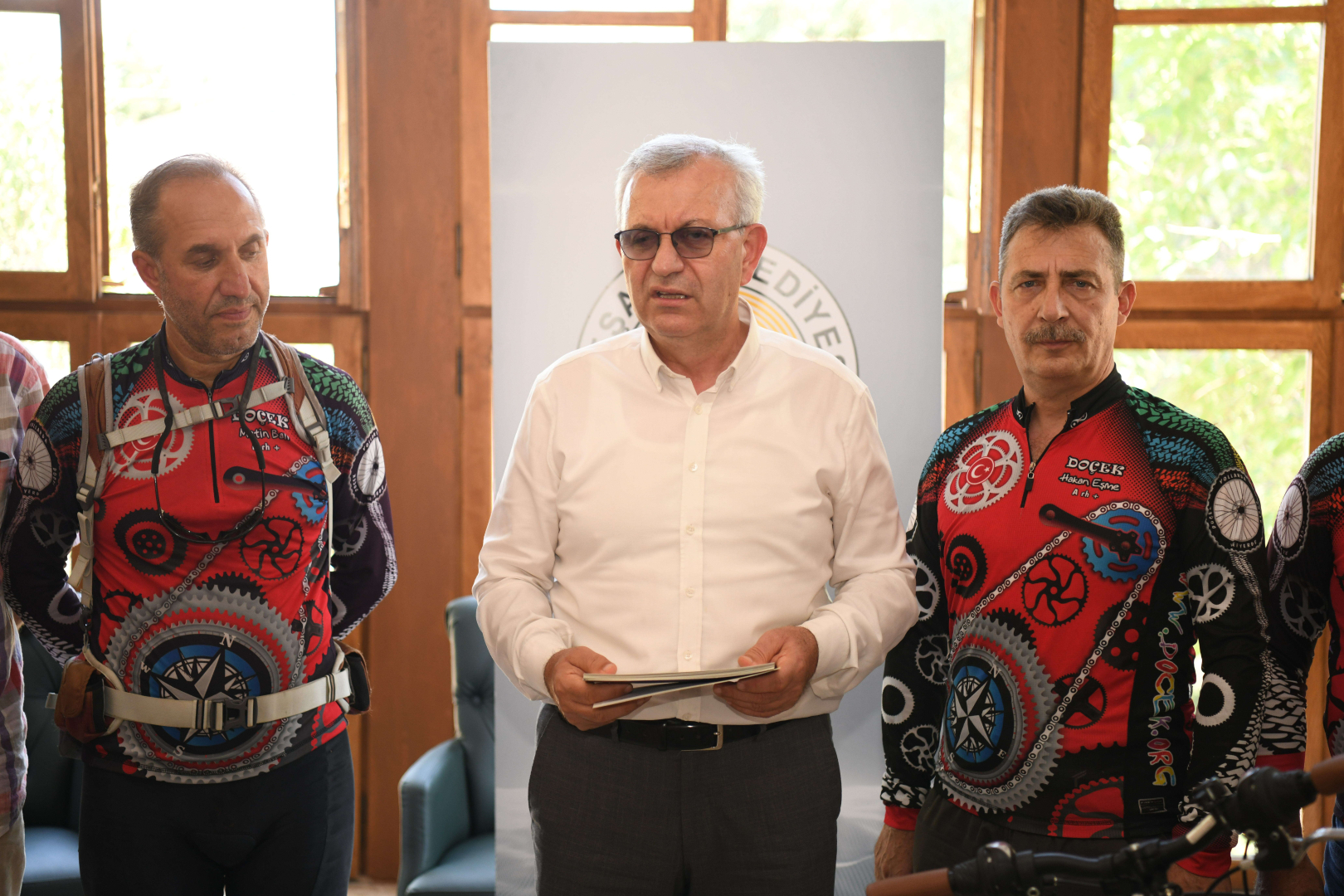 Daha sonra söz alan Eşme, desteklerinden ötürü Helvacıoğlu’na teşekkür ederek şunları söyledi: “Bir derneğin tek başına altından kalkamayacağı büyüklükte bir festival düzenleniyoruz. Bu yıl festivalimizin 10. yılı. 10 yıldan bu yana bu konuda mücadelemizi sürdürüyoruz. Türkiye’de çok saygın bir bisiklet festivali. Bunu el ele başardık. Çok yoğun bir katılım var. İlçemiz dışından, İlimiz dışından ve Almanya, Yunanistan, Bulgaristan ile Polonya gibi farklı ülkelerden gelenler olacak. Ulusal ve uluslararası anlamda talep gören festival. Derneğimizin de 30. yılı. 14 dakikada kontenjan doldu. Amacımız ülkemizin değişik bölgelerinden ve yabancı ülkelerden insanları buraya çekmek. Bu yılın teması ‘Yaşasın Cumhuriyet’. Festivalimiz, 8-9-10 Eylül tarihlerinde yapılacak. Gerçek macera yaşamak isteyenler güzel bir festival yaşayacak. Bölgemizde sadece 45 günlük bir deniz sezonu olmadığını, doğal turizmi potansiyeli olduğunu göstermek istiyoruz.”