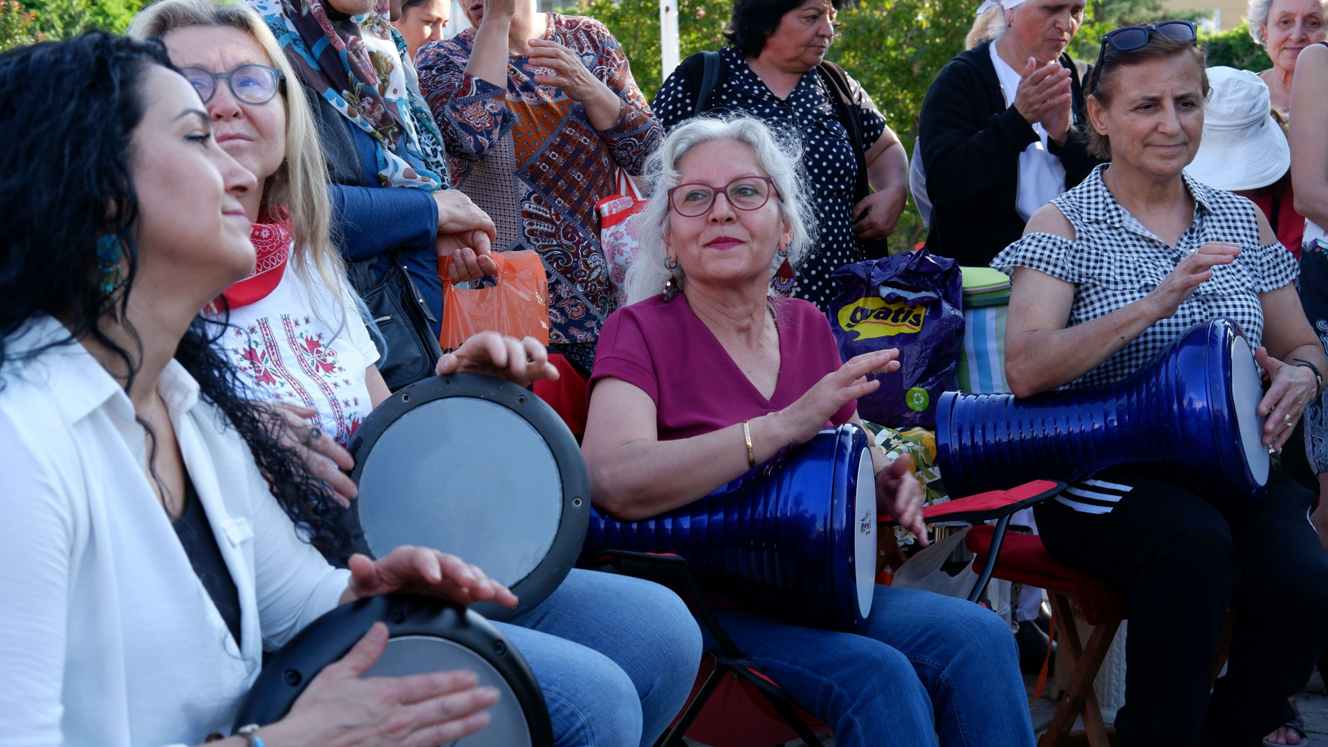 Edirne Barış Parkı’nda bir araya gelen Günebakanlar darbuka ritim grubunun üyeleri, sergiledikleri performansla yoğun ilgi gördü. Erkeklere özgü bir çalgı aleti olarak bilinen darbukayı başarıyla çalabilen kadınlar; kadınların yapabileceklerinin sınırı olmadığını ve kadınların her işin altından kalkabileceğini göstermiş oldu.