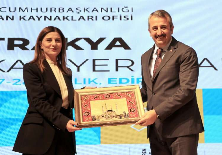 Edirne Valisi Yunus Sezer ve Trakya Üniversitesi Rektörü Prof. Dr. Erhan Tabakoğlu, konuşmaların ardından konuşmacılara hediye takdim etti.
