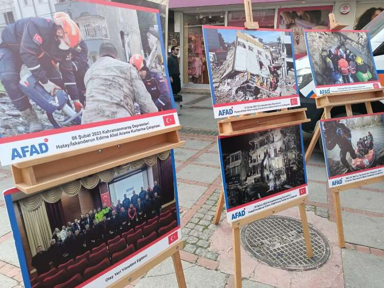 Saraçlar Caddesi’nde stant açan İl AFAD Müdürlüğü, vatandaşlara bilgilendirici broşür dağıtırken; özellikle Kahramanmaraş, Hatay ve Adıyaman’da deprem sonrası arama kurtarma çalışmaları ile Meriç nehrindeki kurtarma çalışmalarını gösteren fotoğrafları sergiledi.