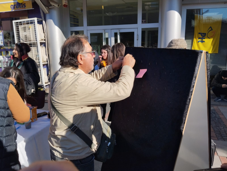 Açıklamanın okunmasının ardından oluşturulan panoya vatandaşların kadına karşı şiddet konusunda düşüncelerinin yazıldığı dilekler asıldı. Dilek panosuna sadece kadınların değil, duyarlı olan erkeklerin de yazı yazarak astığı görüldü. Asılan dileklerin gün sonunda toplanarak kitapçık haline getirileceği belirtildi.