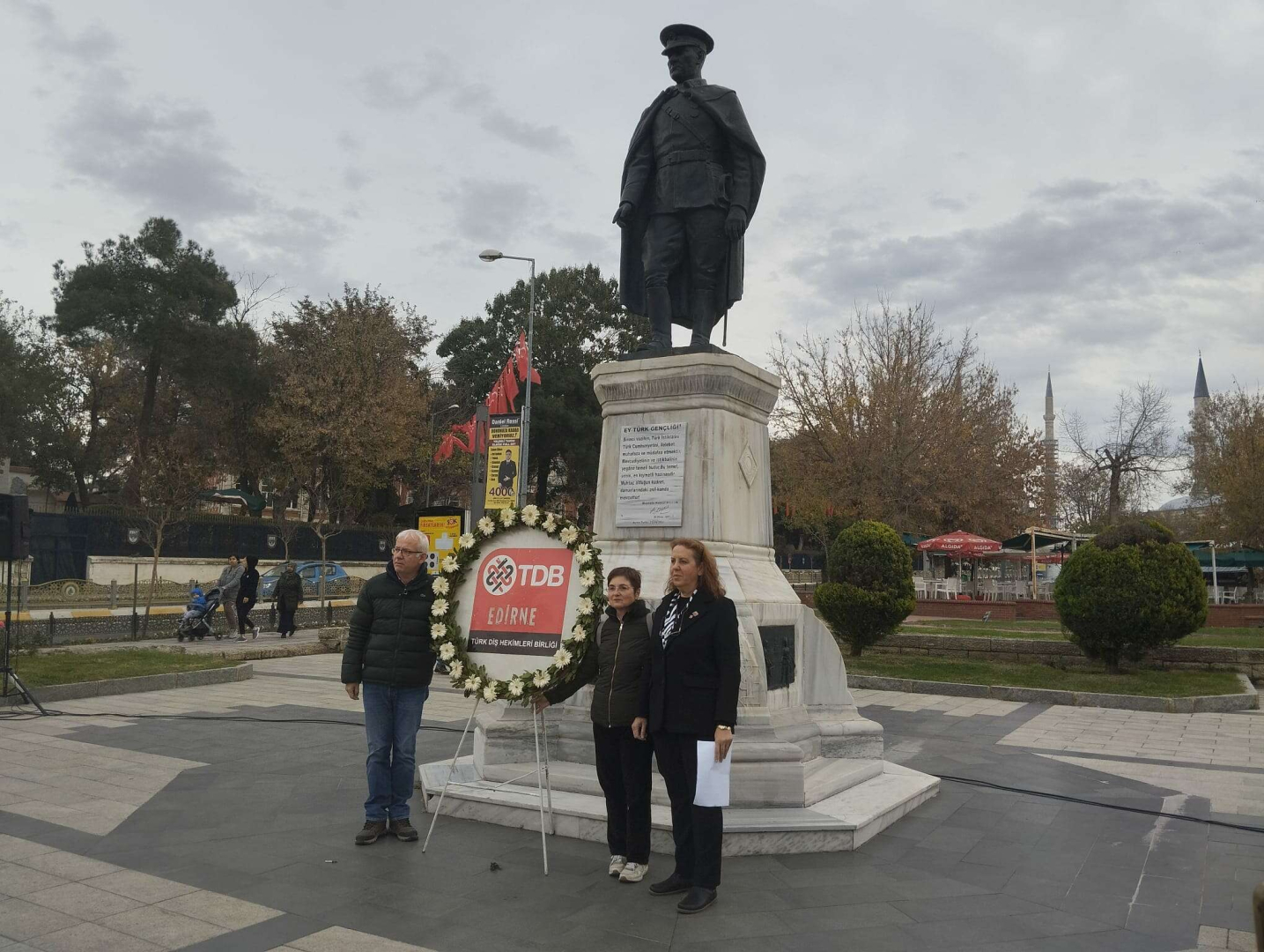 Her yıl 20-26 Kasım tarihlerinde kutlanan Toplum Ağız Diş Sağlığı Haftası, Edirne’de Diş Hekimleri Odası’nın Atatürk anıtına çelenk sunmasıyla başladı. Edirne’de faaliyet gösteren diş hekimlerinin katıldığı törende çelenk sunmanın ardından, saygı duruşu ve istiklal marşı okundu.